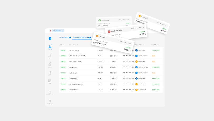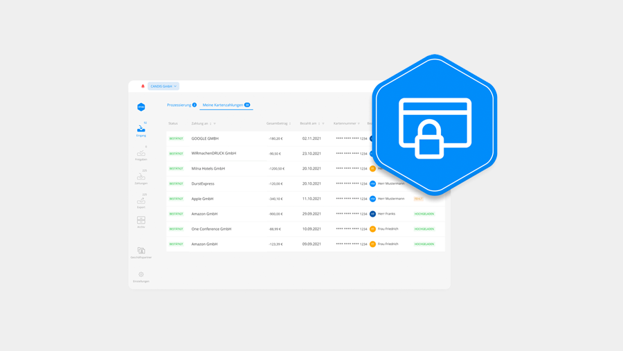 Dank Echtzeit-Übersichten erhalten Sie vollständige Kontrolle über sämtliche Zahlungen des Unternehmens. Endlich kein nerviges Warten mehr auf die monatliche Kreditkartenabrechnung. Die Kreditkarten Transaktionen werden direkt mit den entsprechenden Belegen in CANDIS verknüpft. Und wer vergisst den Kreditkartenbeleg hochzuladen, der bekommt eine automatische Erinnerung.
