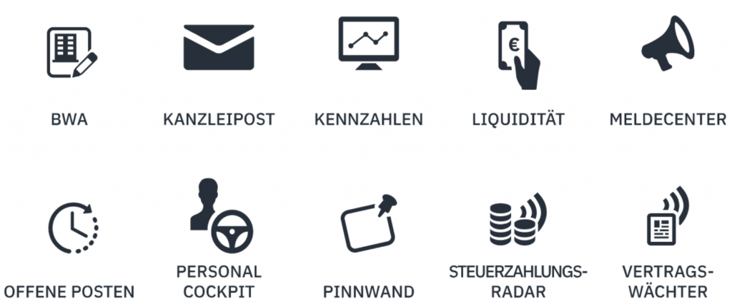 Es ist umfangreich und vielfältig in der Anwendung. Schließlich macht Individualität den Unterschied in der Beratung und das ist es, was in der Zukunft wichtig ist. Es wird darum gehen, nicht ein Steuerberater, sondern DER Steuerberater zu sein. Mit der großen Bandbreite an Auswertungen und Unterstützungsprozessen schaffen Sie eine Professionalisierung der Steuerberatung und deutliche Vertiefung der Zusammenarbeit mit Ihren Mandanten. Das einzigartige Tool verschafft Ihnen den Überblick von Steuerzahlungen, Fibu-Daten, Personalauswertungen, aktuellen betrieblichen Kennzahlen, BWA bis zur Bilanz.
