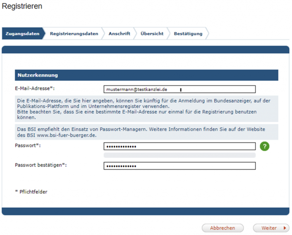 Neu dabei ist (und das ist die kleine Herausforderung dabei), dass sich jede übermittelnde Person auf der Publikationsplattform des Bundesanzeigers persönlich registrieren und identifizieren muss.