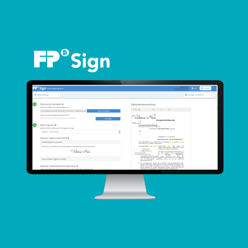 FP Sign – DIGITALE UNTERSCHRIFT MADE IN GERMANY. Die Lösung für Steuerberater aber auch für Unternehmen. Stellen ’Sie Ihre Unterschriftsprozesse auf das digitale Zeitalter um und profitieren Sie durch die neuen Prozesse von einer effizienteren Arbeitsweise. Des Weiteren können Sie auch Unterschriftenprozesse mit Ihren Mandanten / Geschäftspartnern digitalisieren. Mit der Signaturlösung von FP Sign lassen sich Dokumente mit Schriftformerfordernis rechtsgültig digital unterzeichnen. Drei unterschiedliche Signaturlevel; die fortgeschrittene oder die qualifizierte elektronische Signatur erlauben es Ihnen sogar Signaturen passgenau zu den jeweiligen rechtlichen und regulatorischen Anforderungen aufzubringen. Verarbeitet werden können zum Beispiel Dokumente im PDF-, Word- oder Excel-Format.