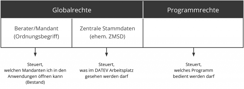 Wir finden zwei verschiedene Welten zur DATEV Rechtesteuerung vor, die sich schon alleine in den Prinzipien der ‚Denkweise‘ unterscheiden.