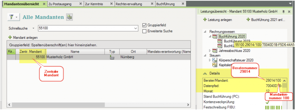 Nicht immer ist in der Anwendung die Mandantennummer auch gleich der zentrale Mandant!