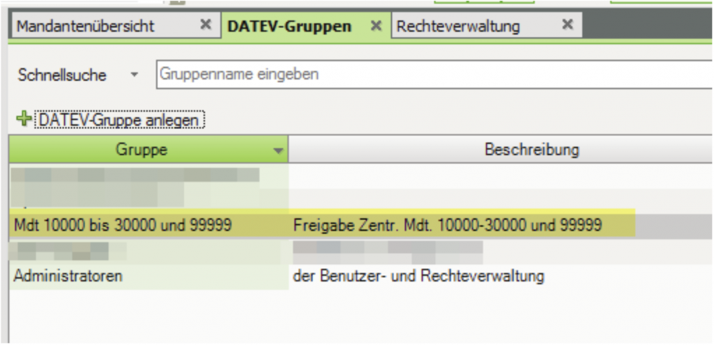Alle Mitarbeiter der Kanzlei dürfen die Zentralen Mandanten 10000 – 30000 und zusätzlich den Mustermandant 99999 sehen.