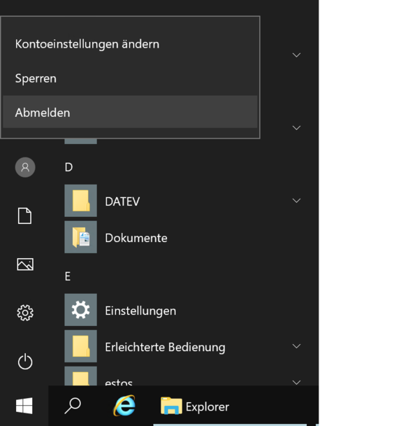 1. Nutzen Sie den „Abmelden“ Button auf dem Desktop ihres ASP Servers
