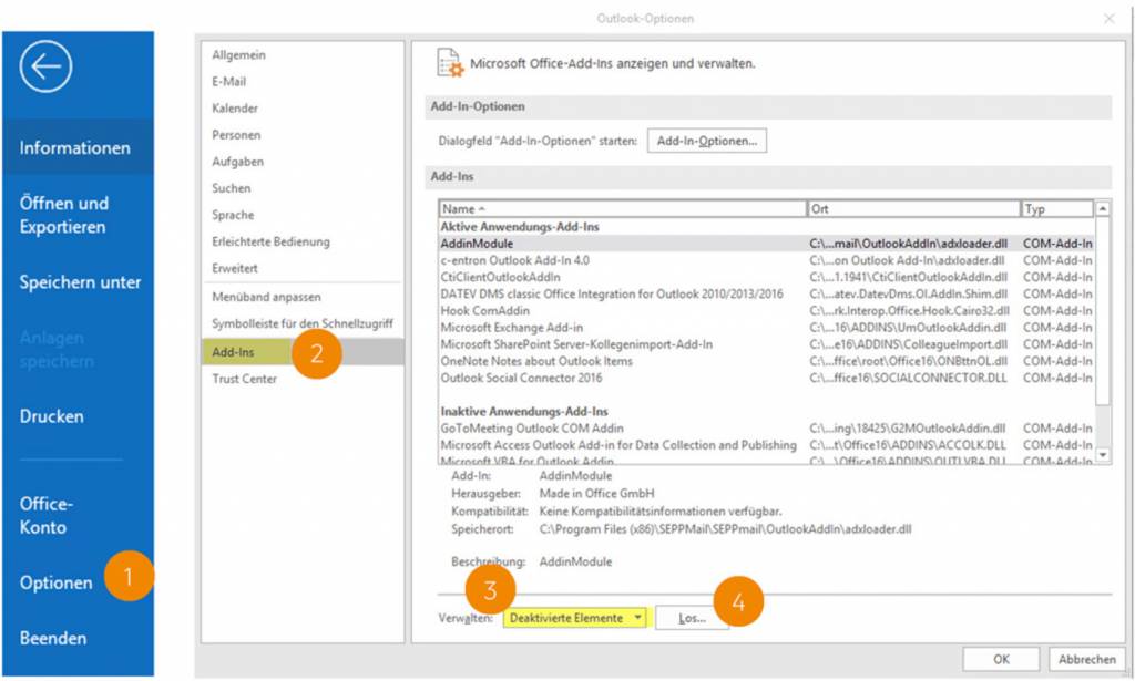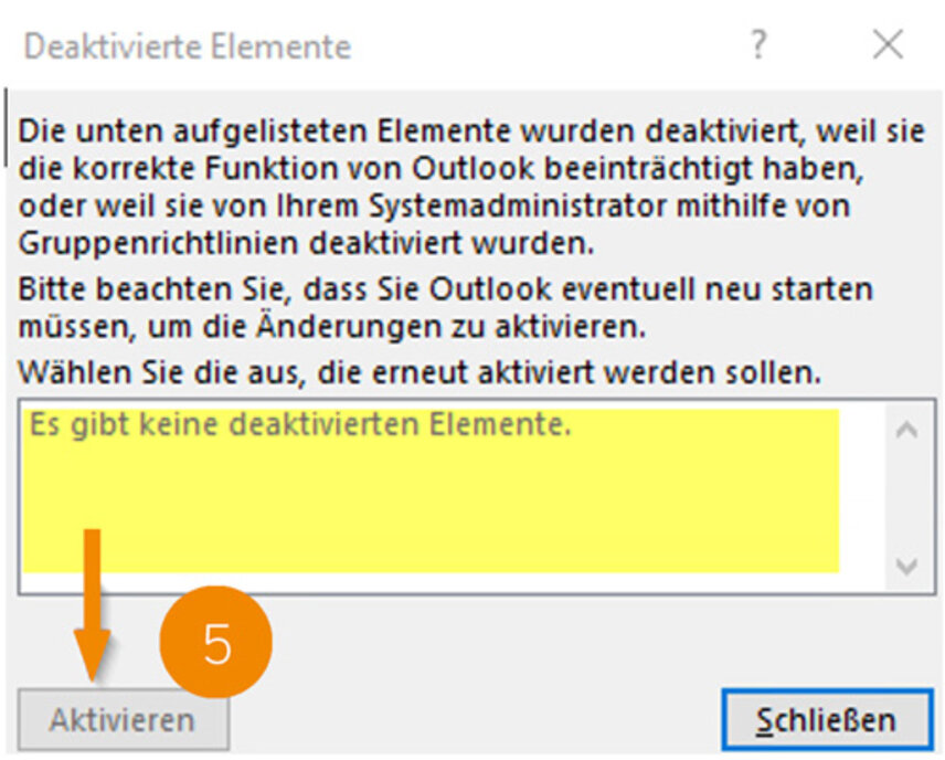 DEAKTIVIERTE Elemente (fehlende Add-Ins)