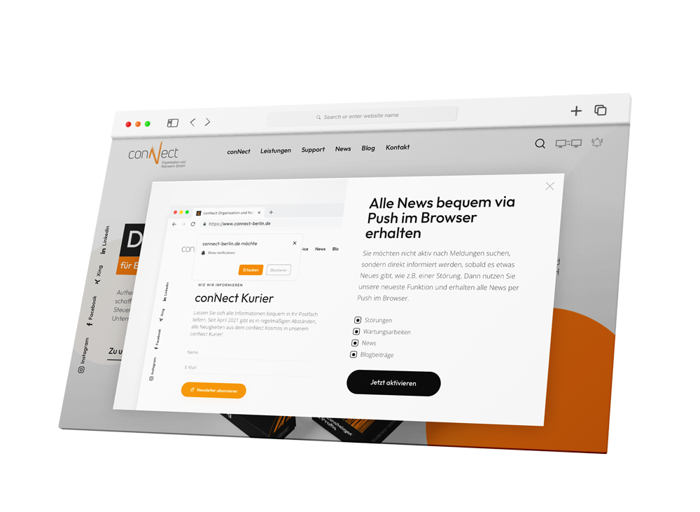 Ich möchte folgende Informationen via Push Notification im Browser erhalten: